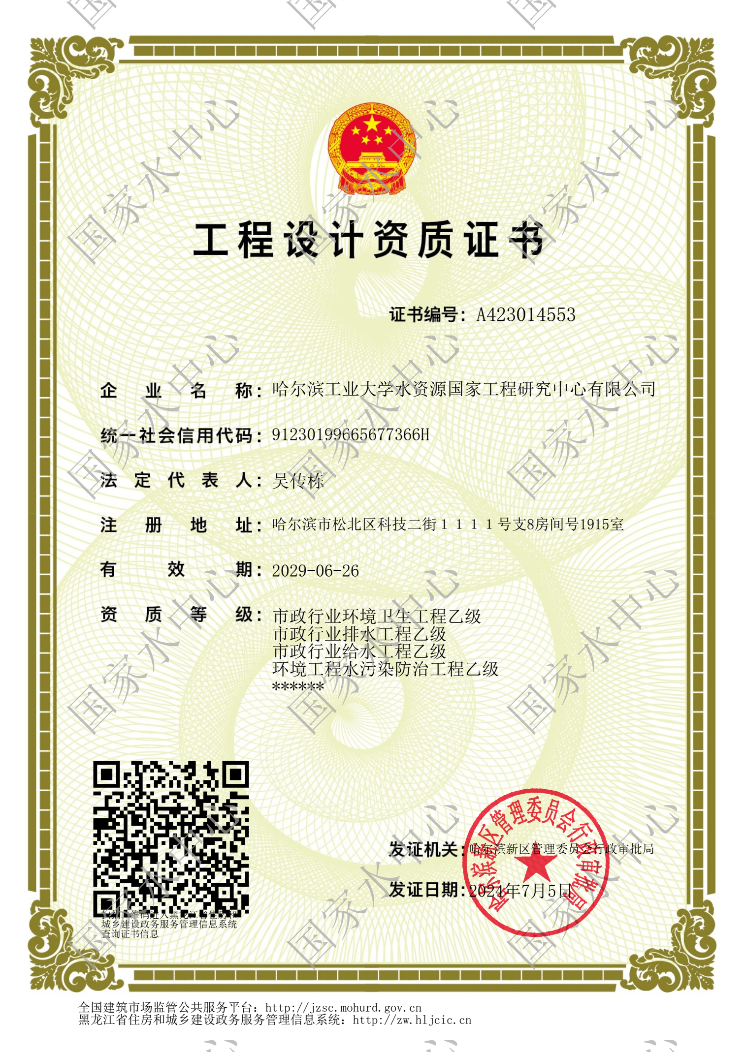 工程設計 乙級 (給排水工程、環(huán)境工程水污染防治)